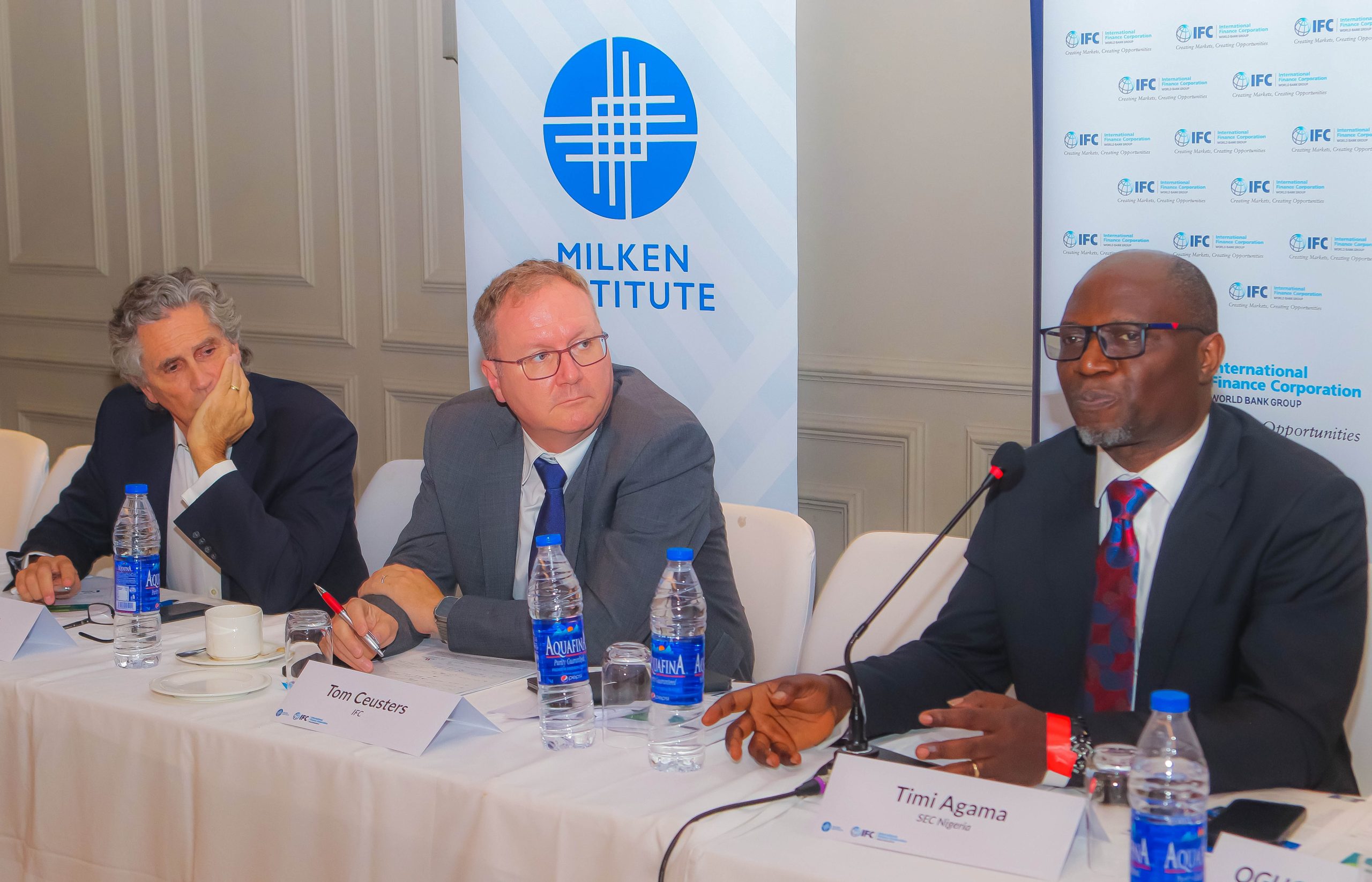 Left-Right: Chief Operating Officer, Milken Institute, John Hunter; Director, Treasury Market Operations, International Finance Corporation, Tom Ceusters; and the Director General, Securities and Exchange Commission, Nigeria, Agama Emomotimi at the International Finance Corporation (IFC)/ Milken Institute stakeholders conference tagged Financing the Future held in Lagos on Tuesday