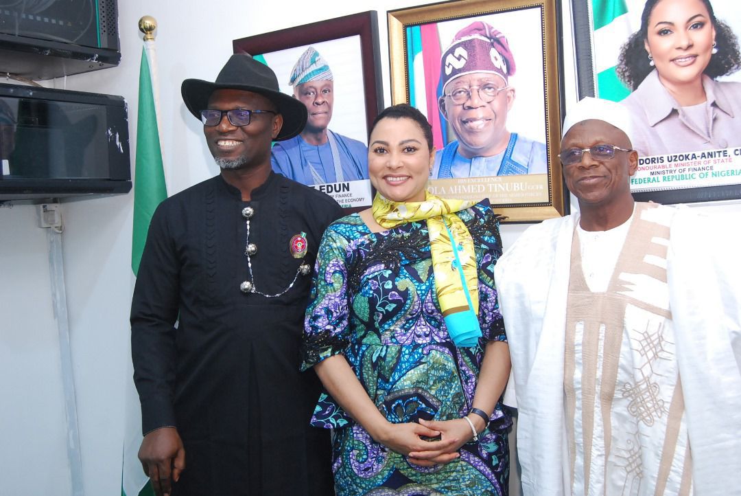 L-R: Director General Securities and Exchange Commission(SEC), Dr. Emomotimi Agama, Minister of State for Finance, Dr. Doris Uzoka-Anite and Chairman, SEC Board, Mairiga Katuka, during a meeting with the Minister in Abuja, at the weekend.