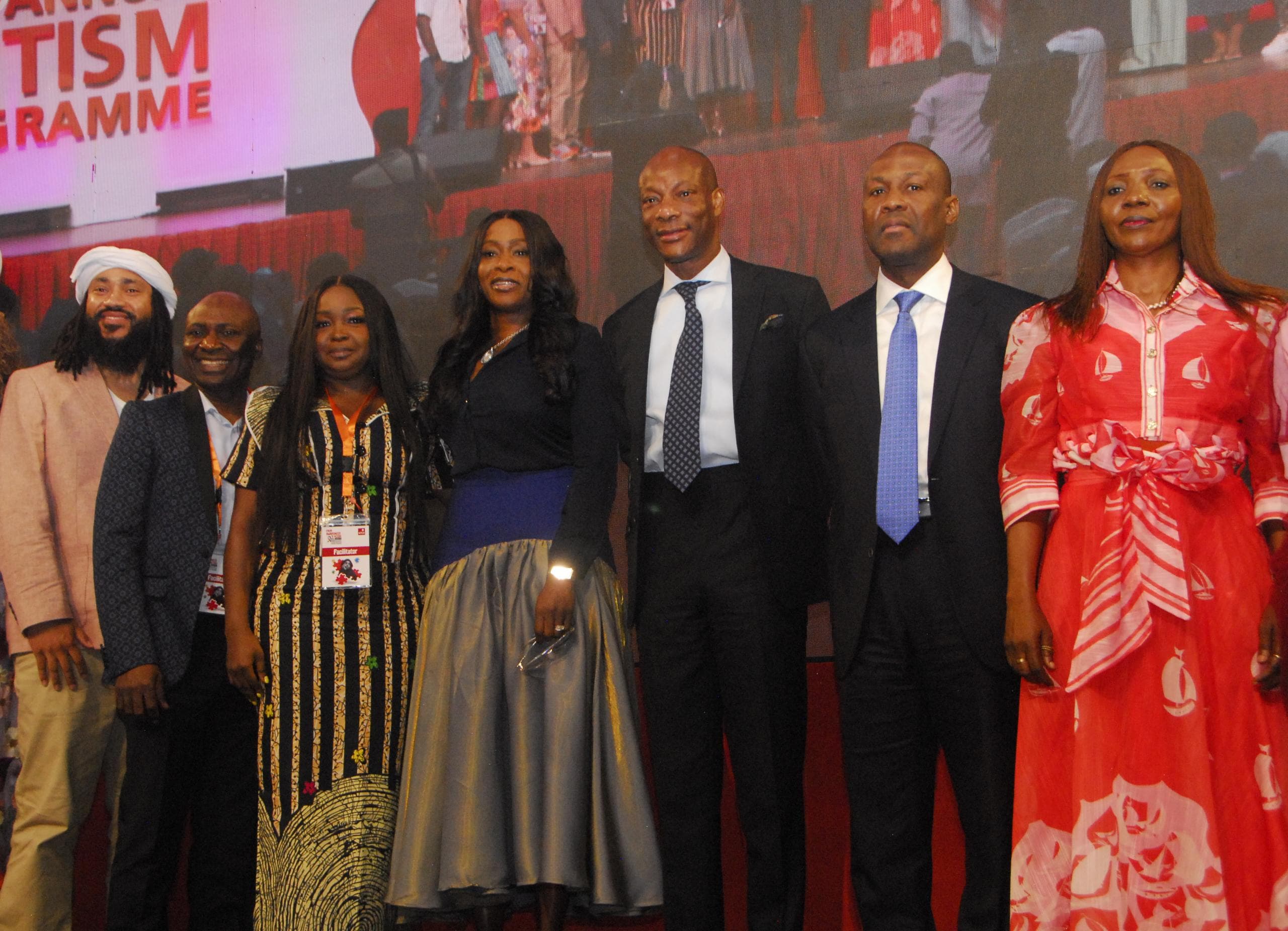 Photo Caption: L–R: Rashard Dobbins, Performer and Production Professional; Lanre Duyile, Behaviour Analyst and Consultant; Solape Azazi, Behaviour Analyst and Autism Advocate; Oyinade Adegite, Chief Communications Officer, GTCO Plc; Segun Agbaje, Group Chief Executive Officer, GTCO Plc; Babajide Okuntola, Deputy Managing Director, GTBank and Grace Bamgboye, Consultant Speech-Language Pathologist at the 15th edition of the GTCO Autism Conference held at the MUSON Centre, Lagos.