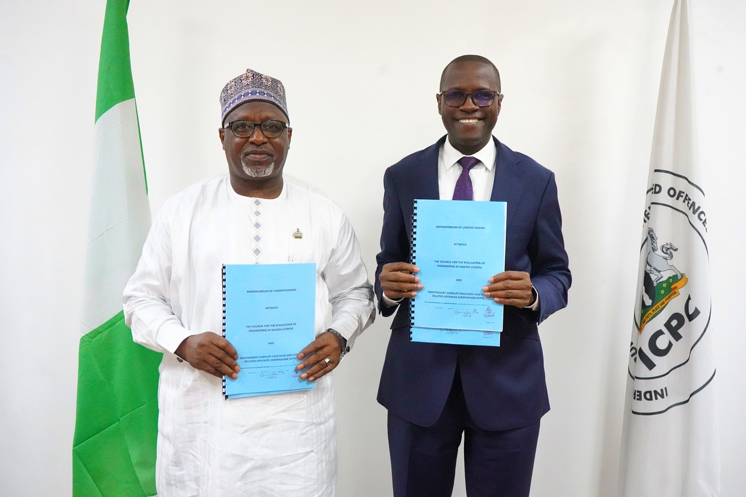 The Independent Corrupt Practices and Other Related Offences Commission (ICPC) has signed a Memorandum of Understanding (MoU) with the Council for the Regulation of Engineering in Nigeria (COREN), for the purpose of promoting integrity and professional ethical standards in the engineering profession regulatory system.