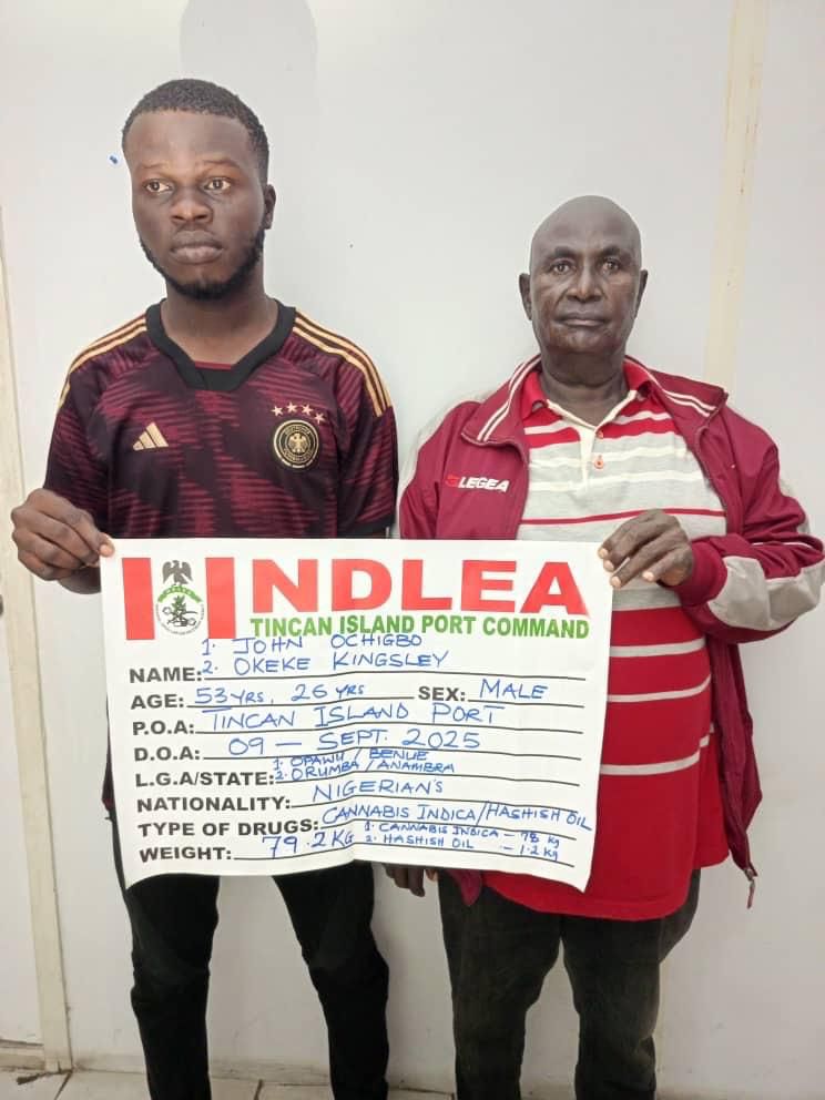 At the Tincan port in Lagos, a total of 161 parcels of Canadian Loud, a strain of cannabis weighing 81.7kg and 1.2kg hashish oil were recovered from a 40ft container of vehicle spare parts and used vehicles imported from Montreal Canada during a joint examination of the shipment on Tuesday 9th September. Two suspects: John Ochigbo, 53, and Okeke Kingsley, 26, have been taken into custody in connection with the seizure.