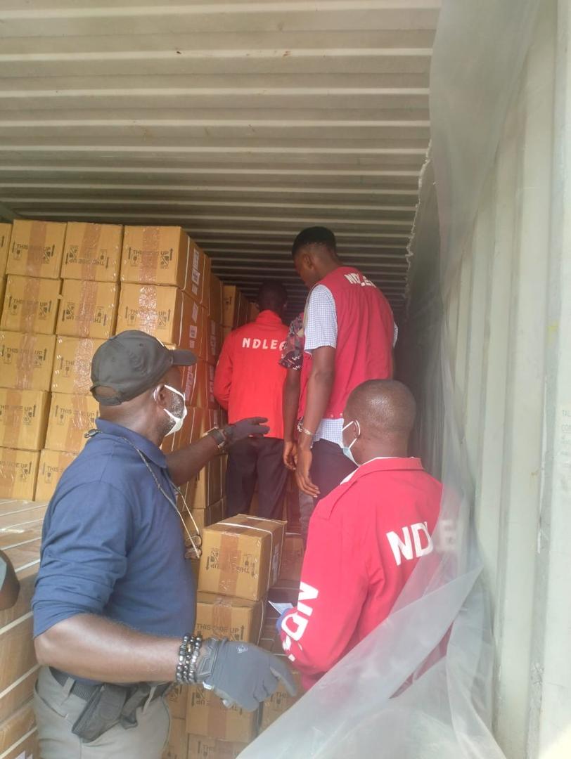 Operatives of the National Drug Law Enforcement Agency, NDLEA, have intercepted a total of Thirty-One Million One Hundred and Twenty-Four Thousand Six Hundred (31, 124, 600) pills of tramadol 225mg and bottles of codeine-based syrup worth over Seventeen Billion Nine Hundred and Thirty-Two Million Two Hundred Thousand Naira (N17, 932, 200, 000.00) in street value at the Port Harcourt Port Complex, Onne, Rivers state and Tincan seaport in Lagos.