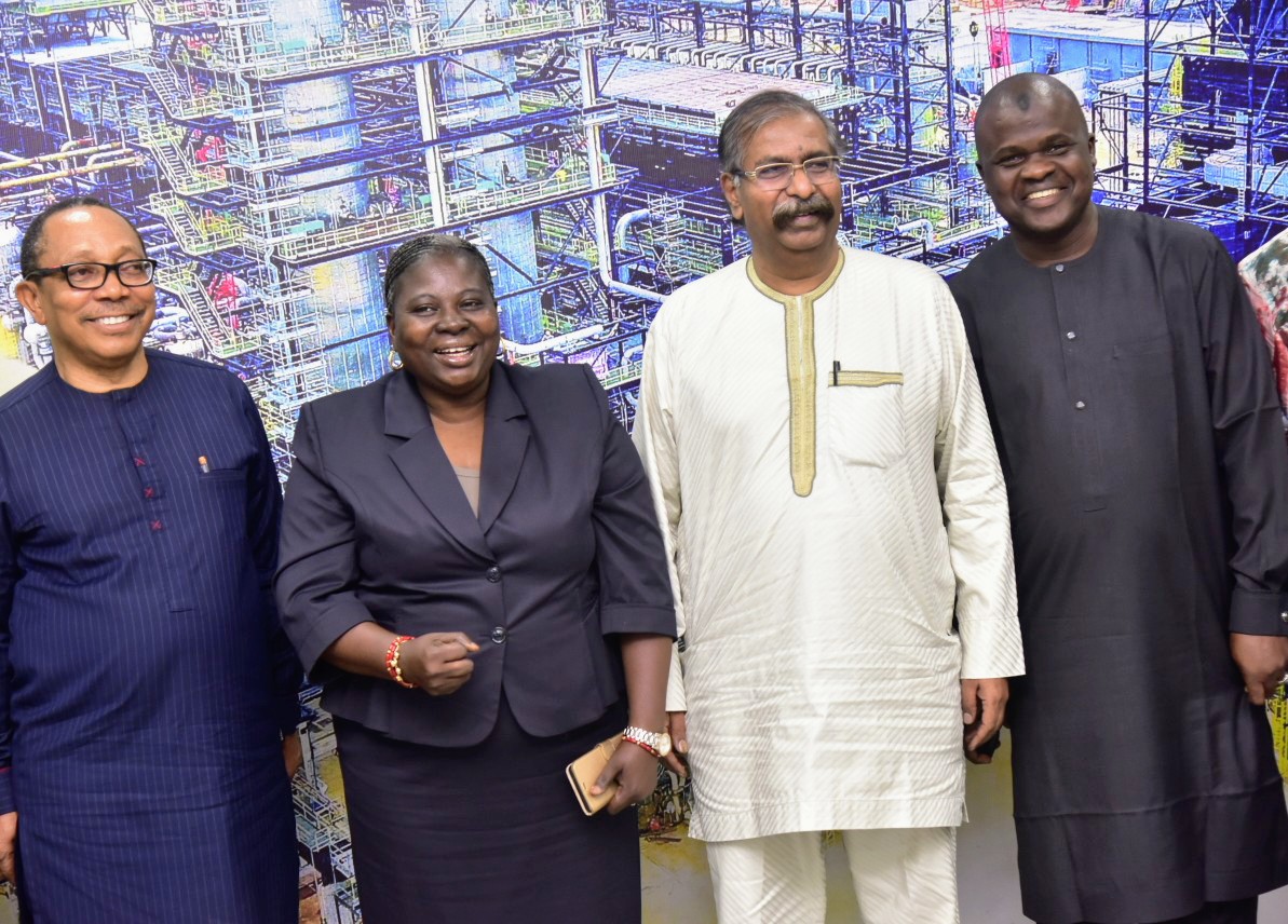 Photo Caption: L-R Group Chief Branding and Communications Officer, Dangote Industries Limited, Anthony Chiejina; NLC Chairperson, Lagos Branch, Comrade Funmi Agnes Sessi; Vice President, Oil and Gas, Dangote Industries Limited, Devakumar Edwin, and Head of Administration, Dangote Petroleum Refinery Limited, Musa Bala; during the Lagos NLC’s visit to Dangote Petroleum Refinery and Fertilizer Plant, Lekki, Lagos, on Tuesday, August 12, 2025.