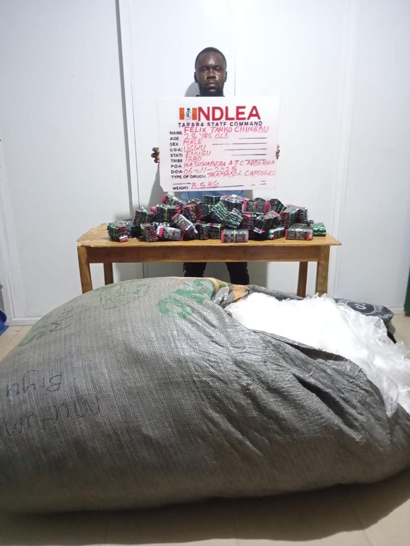 Not less than 34,520 capsules of tramadol were found concealed in different compartments of a Toyota Corolla car marked GAN 102 AR intercepted along Zaki-Biam – Wukari road on Monday 3rd November while the driver Aliyu Samaila, 25, was arrested. The opioids were loaded from Onitsha, Anambra State, and heading to Cameroon. In another operation in Taraba, NDLEA officers on Thursday 6th November arrested a suspect Felix Tanko Chinedu, 28, with 15,020 capsules of tramadol at Kasuwabera ATC in Ardo Kola LGA.